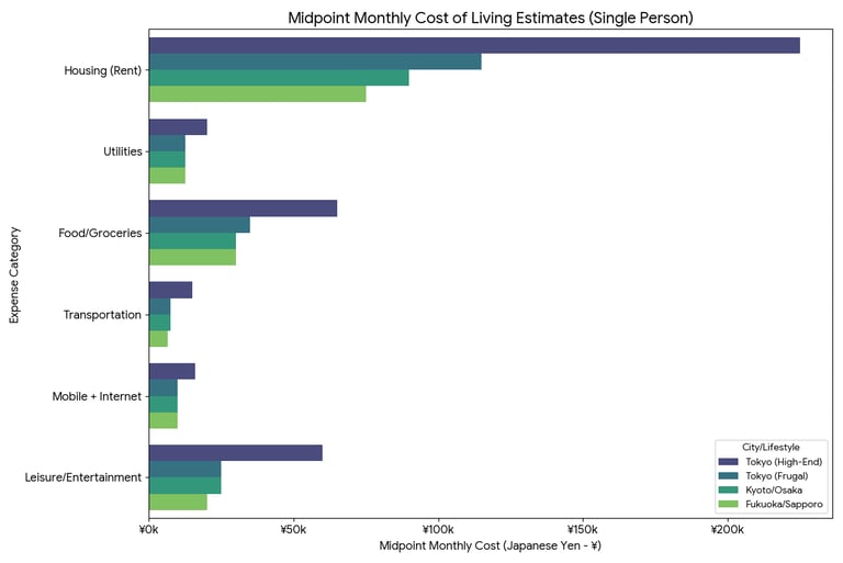 Japan's cost of living is highly variable depending on the city. Tokyo is one of the most expensive cities in the world, while smaller cities are much more affordable.